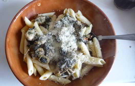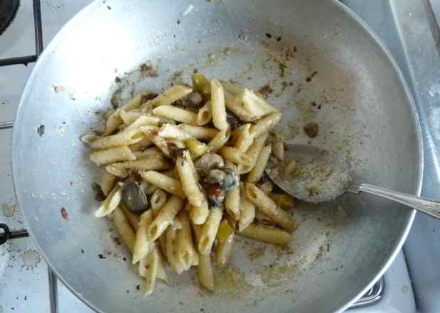 Dopo aver nuotato il vento e' calato ed e' diventata una bella giornata di sole, calda e mi sono fermato a tirare su qualche patella per i gatti, alla fine ho finito con tirare su un pugno di frutti di mare e ci ho fatto una mezza pasta, che e' venuta proprio bene.