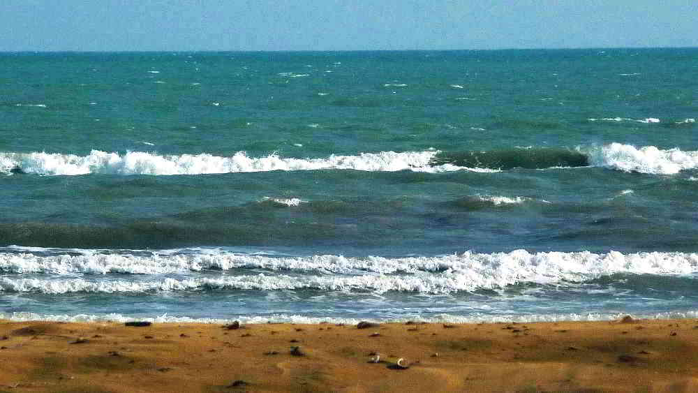 Arrivato al mare, ho trovato venticello e corrente. Sole forte quindi ok. La schiena mi duole e pure il collo, spero non mi venga il torcicollo!