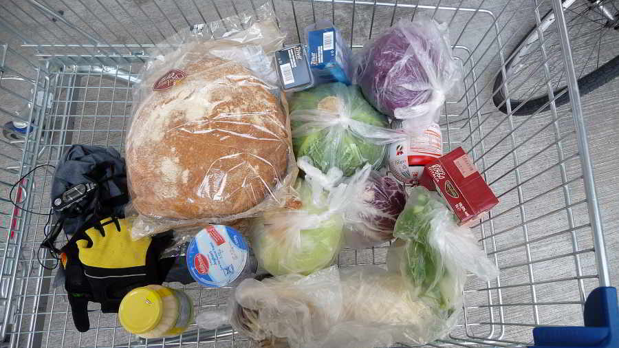 Marzo 21 Niente nuoto, ma ho fatto pedalata fino a Jesolo per rifornirmi di insalata: cavolo, verza, rapa bianca, carote, sedano, finocchio, pompelmi, mele e un casco di banane!